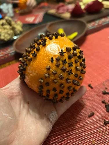 What’s a pomander you ask? The word comes from the French “pomme d’ambre” meaning amber apple - essentially a perfumed ball. It’s an old herbalist technique that has been around for centuries. Traditionally, pomanders covered unpleasant smells and sometimes had medicinal uses.