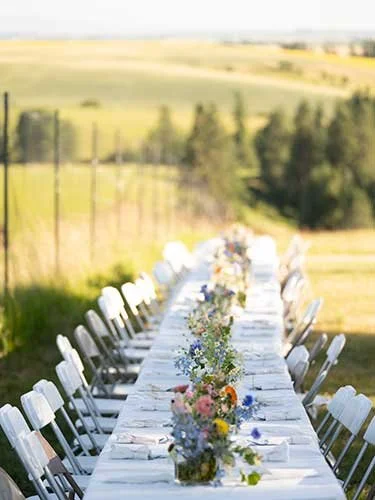 We will have your flowers carefully packaged and ready for you to pick up at our farm in Troy Idaho on the date and time specified in your final order. If you are combining DIY buckets of flowers with pieces that we design for you, it is possible to get the buckets several days before your event and the rest on the big day.